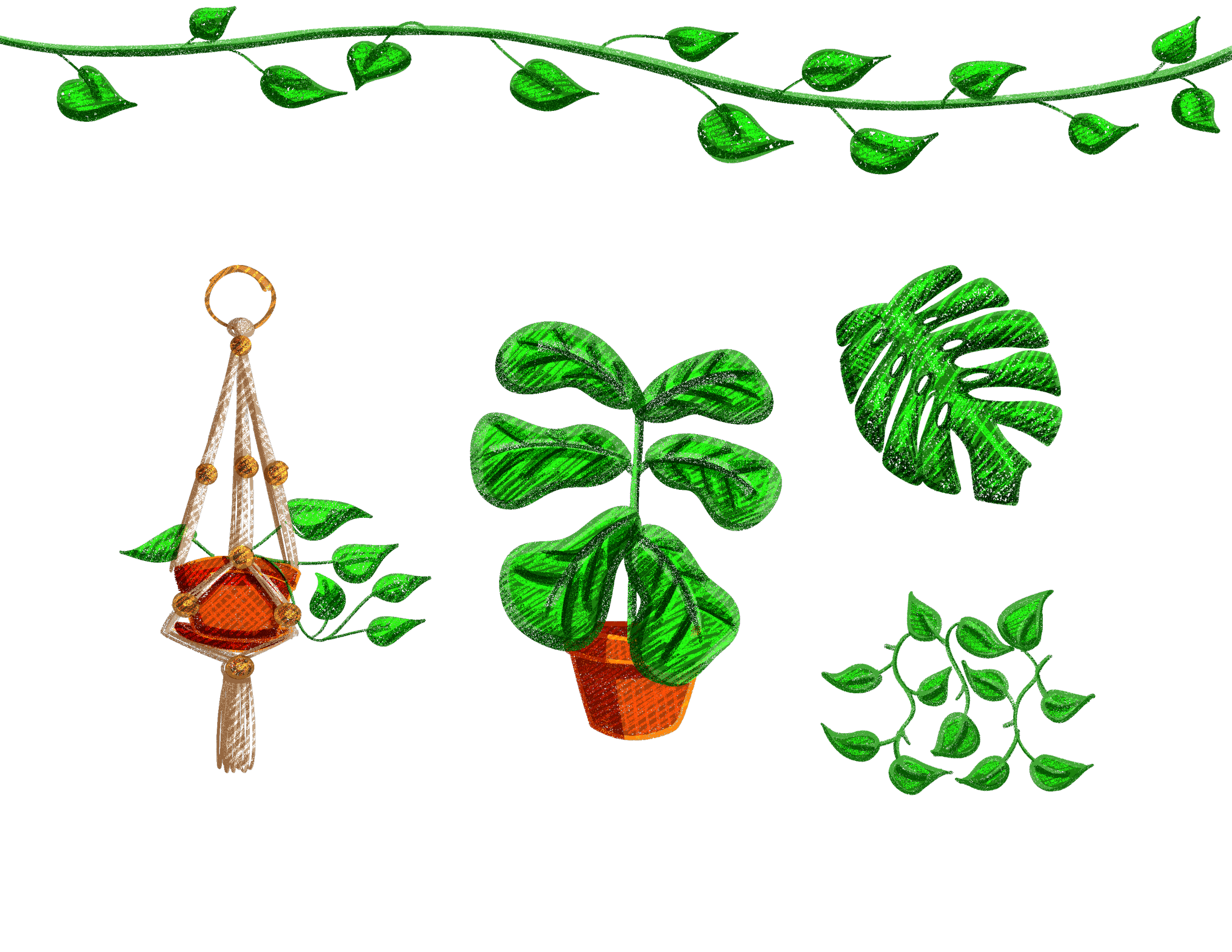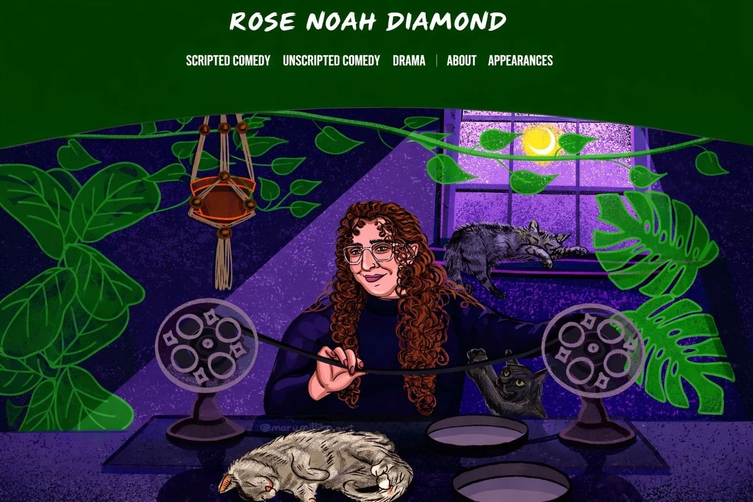 Custom illustrated homepage header created for editor Rose Noah Diamond’s website as well as illustrated graphic elements designed as reusable assets for page decoration and layout.