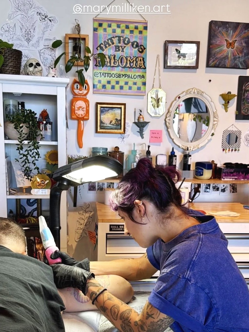 Custom, hand-painted and constructed signs for each artist’s station at Opal Tattoo studio in Beverly Hills, Los Angeles